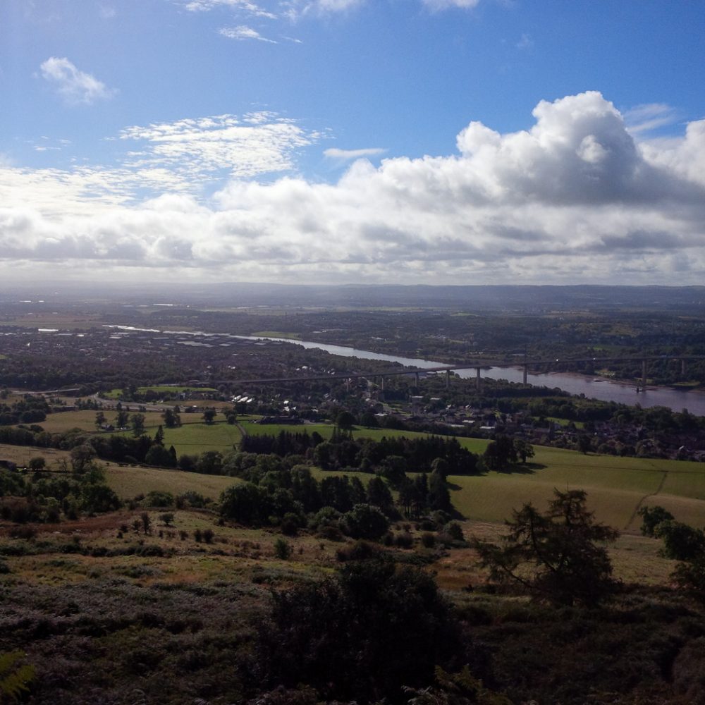 You will see down the River Clyde, past Dumbarton Rock, towards Greenock, Gourock and Helensburgh and up the Clyde towards the shipyards and the skyline of Glasgow. You will be looking down on the Erskine Bridge and directly across the river is Erskine, the Mar Hall, Ingliston Country Club at Bishopton and the rich farmland of Renfrewshire and North Ayrshire.
